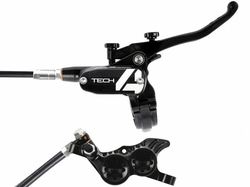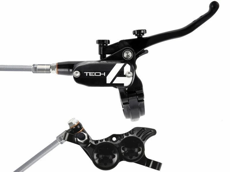 Son maitre cylindre est maintenant équipé de pivot levier monté sur roulements à billes et de nouveaux joints internes réduisant les frictions. L’augmentation de la démultiplication du levier d’environ 30% offre un meilleur feeling et une plus grande puissance tout en réduisant la fatique musculaire. La fixation du maitre cylindre du Tech 4 sur le guidon se fait par un système de collier à charnière très facile d’installation et compatible avec la fixation directe des commandes Shimano ISPEC EV et SRAM Matchmaker en utilisant des adaptateur vendus séparément. Toujours d’actualité, les vis BPC et Reach Adjust permettent d’ajuster la garde du levier et le contact plaquettes sans outil .